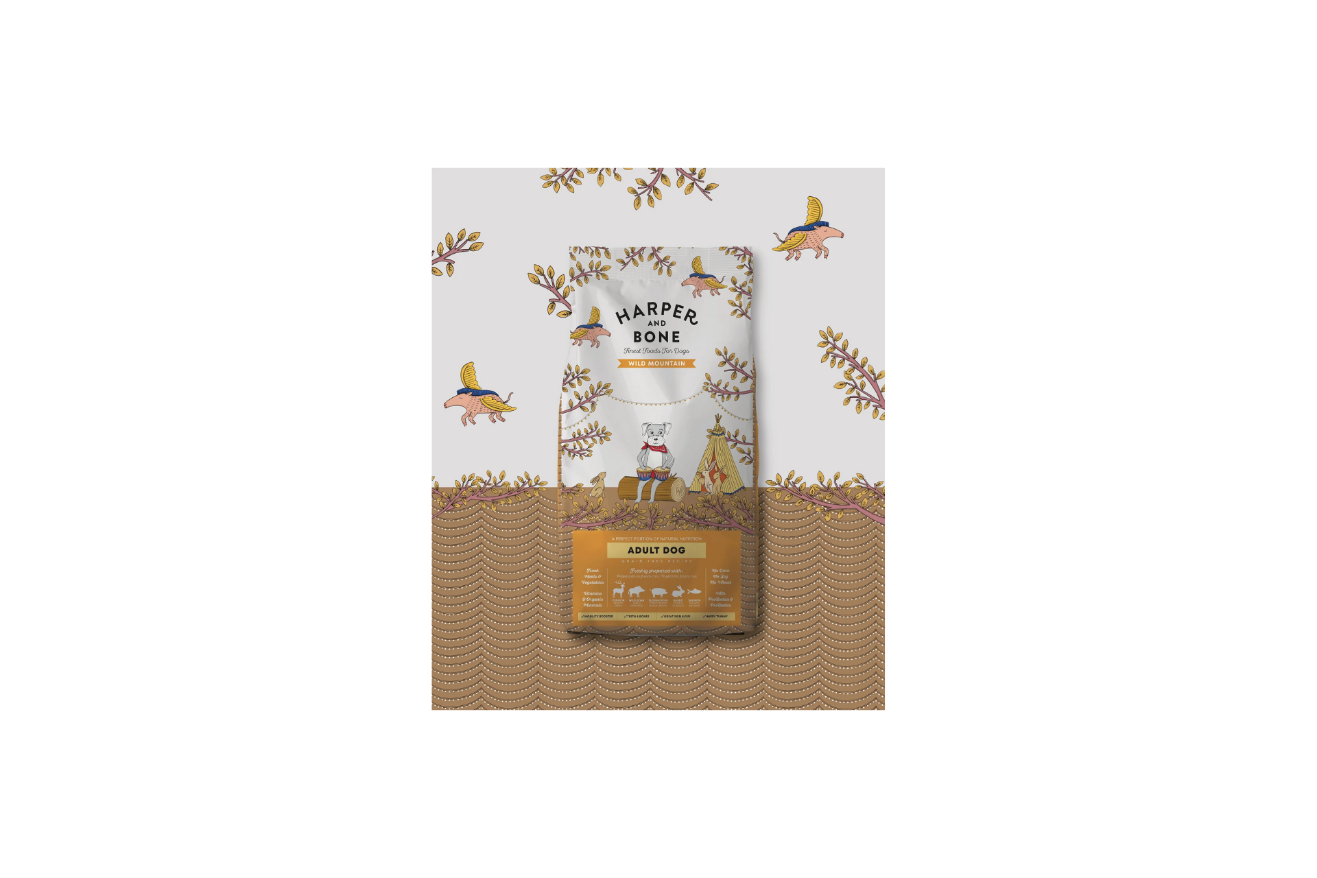 Harper & Bone Wild Mountain Medium Maxi Adult Dog es un pienso premium especialmente formulado para perros adultos de razas medianas y grandes. Esta receta sin cereales combina proteínas de alta calidad como venado, jabalí, cerdo ibérico y conejo, proporcionando una dieta equilibrada, altamente digestible y rica en nutrientes esenciales. Disponible en formatos de 2 kg y 12kg, es perfecto para propietarios que buscan ofrecer a sus mascotas una alimentación natural y saludable.