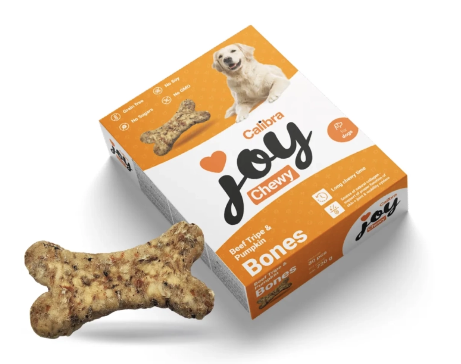 Las golosinas de ternera con calabaza y colágeno natural, en su popular forma de hueso, ofrecen una masticación duradera y nutritiva. Sin cereales y con ingredientes funcionales, favorecen la salud de la piel, articulaciones y sistema musculoesquelético gracias al colágeno natural. La calabaza, rica en fibra, vitaminas B1, B2 y C, junto con minerales esenciales como magnesio, potasio e hierro, ayuda a mejorar la digestión, desintoxicar el organismo y fortalecer el sistema inmunológico. ¡Un snack delicioso y saludable para tu perro!
