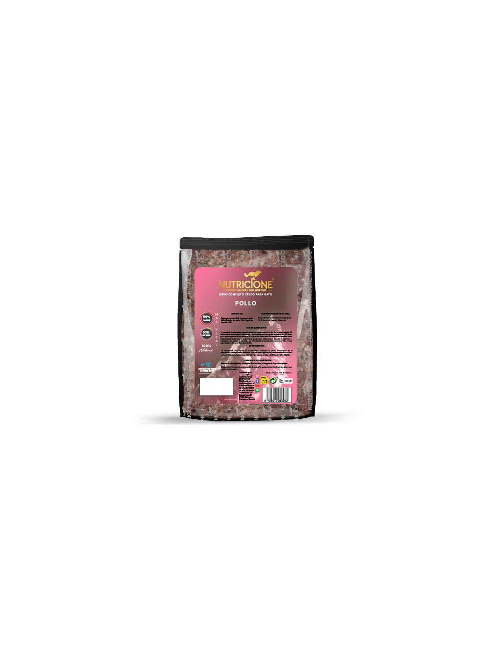 Menú completo monoproteico de carne, carcasa y vísceras de Pollo para gatos.