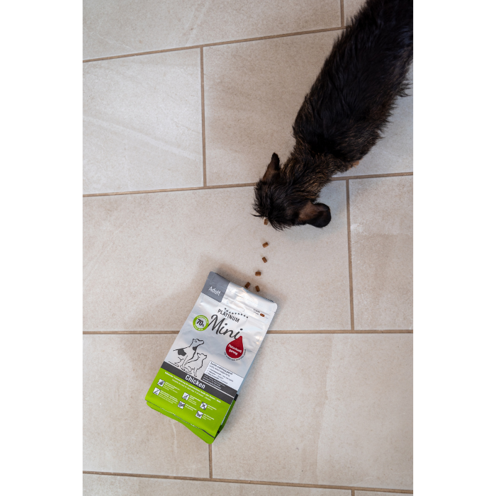 - Perretes que están realizando clases de adiestramiento, y consumen gran cantidad de premios; normalmente cualquier bolsa de snacks de calidad, vale entre 1,50 y 2€ , y lleva entre 50 y 70gr de cantidad; por el contrario, con una bolsa de Platinum Adult de pollo, que vale 15,65€, te quedan los 100gr a 1€ aproximadamente, lo cual supone un ahorro considerable si utilizas mucha cantidad de snacks.