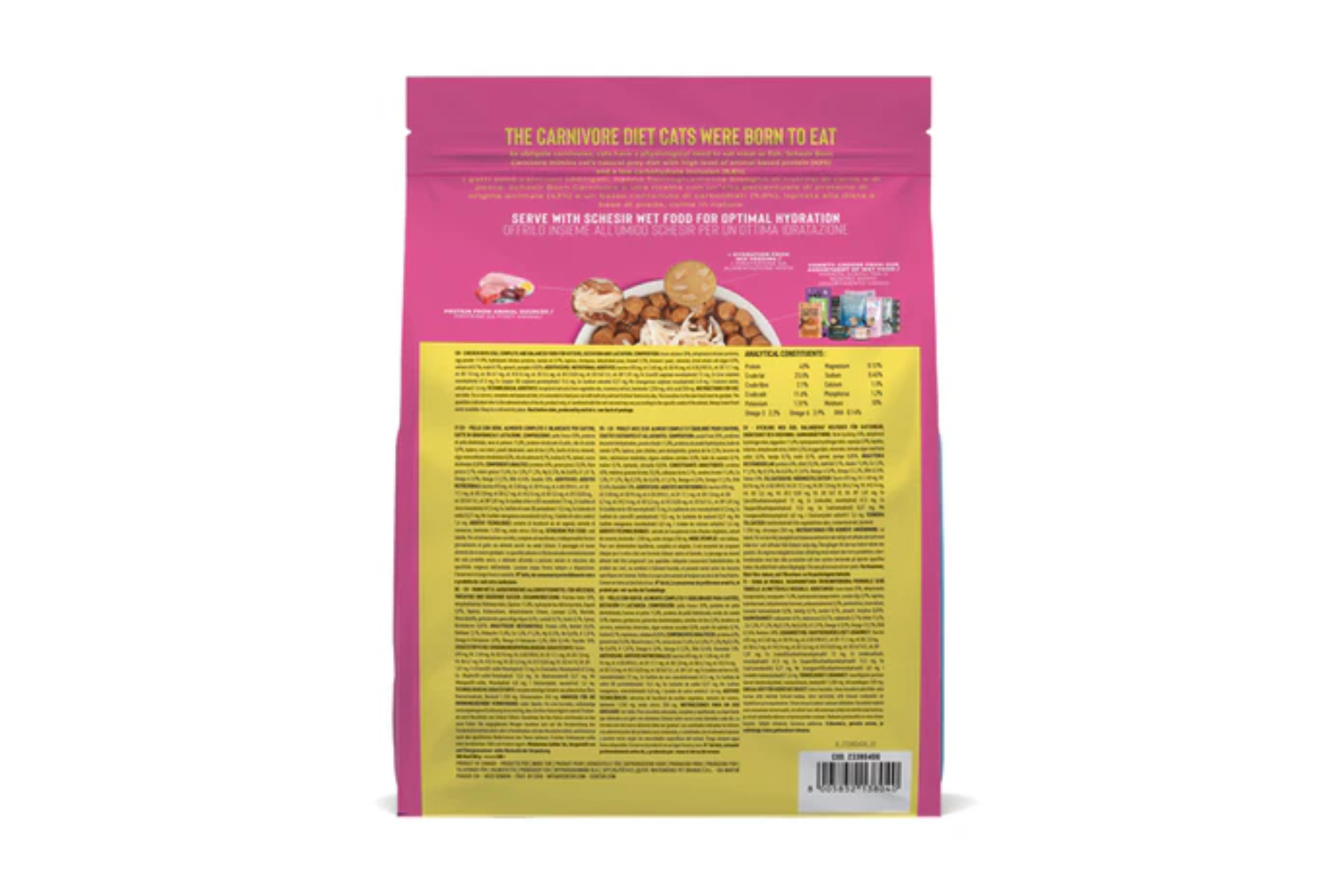 Schesir Pienso Born Carnivore Kitten Pollo con Huevo: alimento seco para gatitos, alto en proteínas y bajo en carbohidratos, con omega 3 y 6 para una piel y pelaje saludables.
